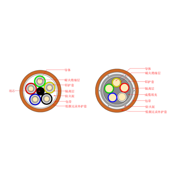 电缆空隙及电缆周围挤包有无机矿物质材质,具有与氧化镁相同的耐火性能